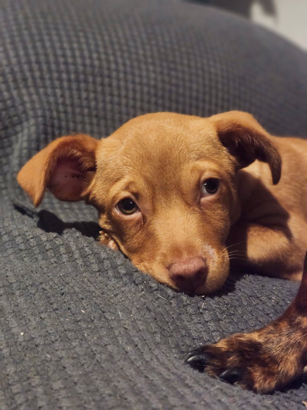 Don’t let his tiny size fool you—Clifford is a mighty little pup with the heart of a warrior. At just 4 weeks old, this brave boy was dumped and left to fend for himself. He even carries a little scar under his neck, a reminder of the hardship he’s already overcome. But Clifford doesn’t let his past slow him down—he’s rough, tough, spunky, and ready to take on the world! Clifford loves to play, isn’t afraid of anything, and has a big personality packed into his small frame. His favorite daily routine? Eat, play, nap…repeat! He gets along wonderfully with children and other dogs, making him the perfect companion for a loving family. And don’t be surprised if mealtime becomes his favorite part of the day—this little guy sure loves his food. Clifford has shown incredible strength and resilience for such a young pup, and now he’s ready for his happily-ever-after. Could that be with you?
